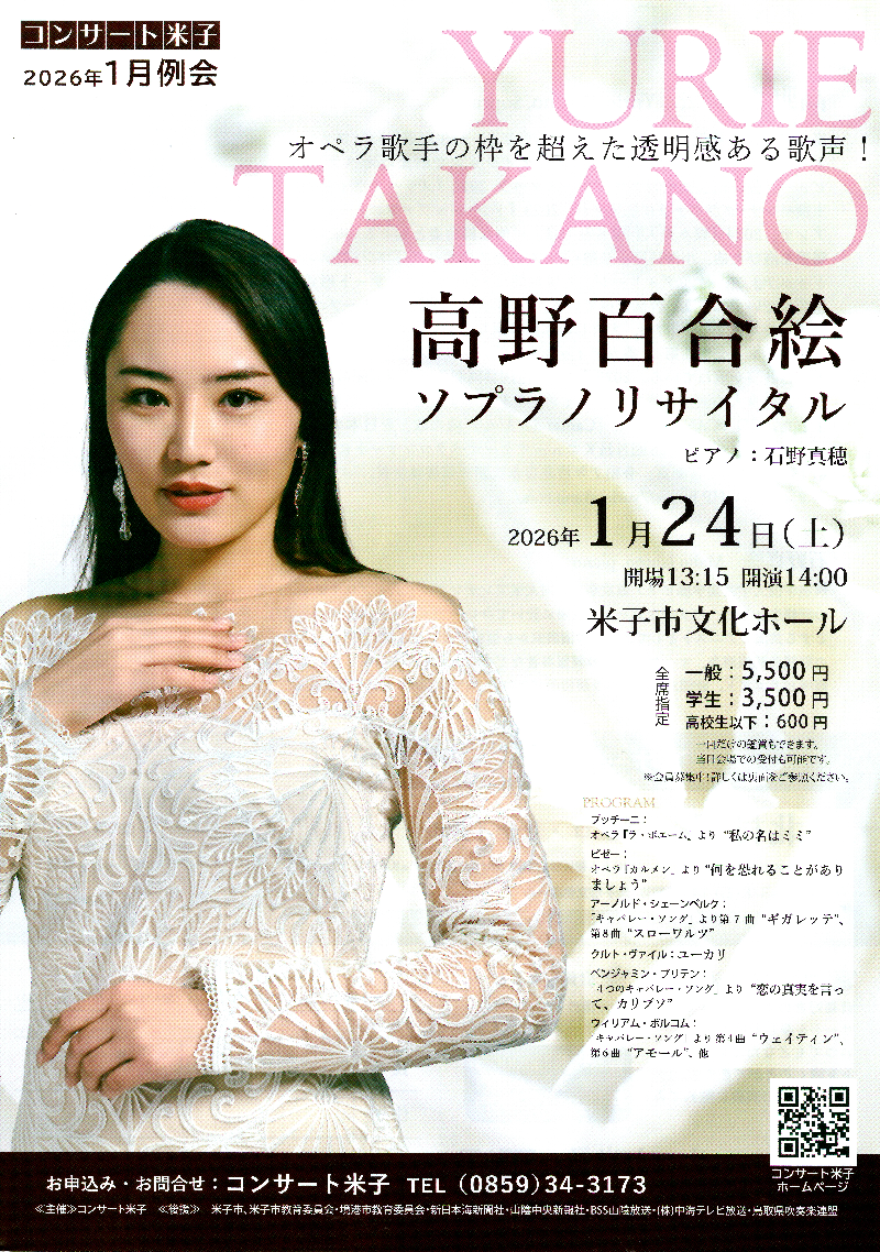電話でのお問い合わせは TEL.0859-34-3173 メールアドレス concertyonago@sea.chukai.ne.jp